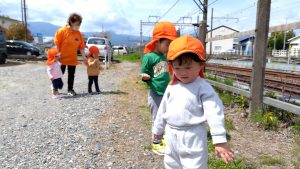 子どもたちだけでなく、職員も笑顔いっぱいでお散歩を楽しんでいます