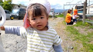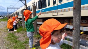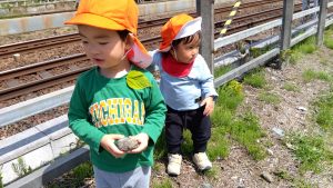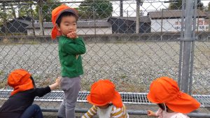 なのはな保育園には楽しい先生がいて、「右手に見えますのは・・・」と、バスガイドさんのようにお話ししてくれます