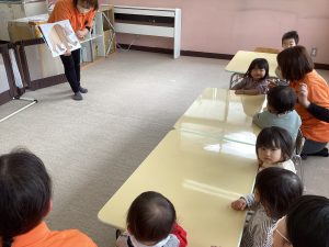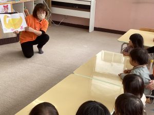 今日は、英語カリキュラムで、「Brown bear」の絵本を見ました