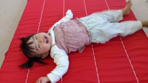 初めてのマットにわくわくしている子![]()