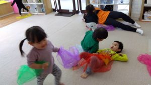 リトミックスカーフを使いながら、それぞれ思い思いの姿に変身して楽しんでいました