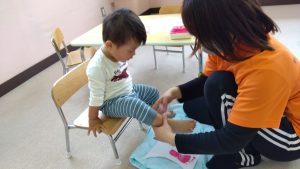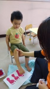 今日は、製作活動の為に足型スタンプをしました ![]()