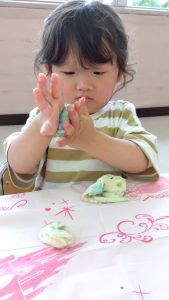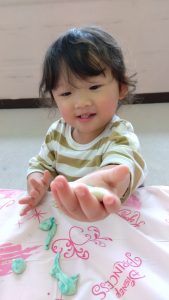 今日も小麦粉粘土で遊びましたよ