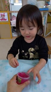 今日は、ジェル粘土と小麦粉粘土遊びをして過ごしました