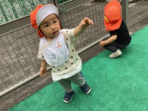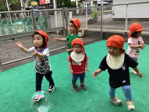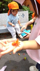 シャボン玉遊びをしたり、落ちていた葉っぱを投げて遊びましたよ
