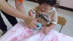 薄めた絵の具にベーパーをちょんちょんして染めます![]()