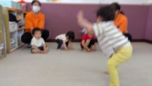 雨で外に出られなくても、カエルやカメに変身してたくさん身体を動かす遊びを楽しんでいます![]()