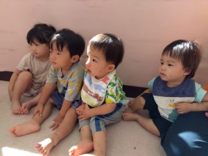 お友だちの真似をしたり同じ遊びを共有することを喜んでいます