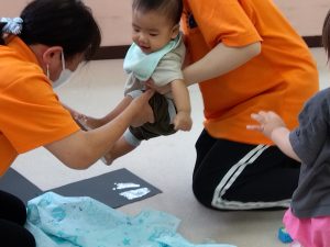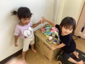 お友だちの真似をしたり同じ遊びを共有することを喜んでいます