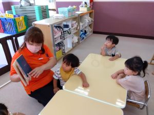 みんなで一緒に読み聞かせを聞くことも好きですが、保育者とゆったりした雰囲気の中で絵本を読む時間も大好きです ![]()