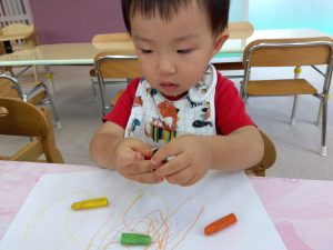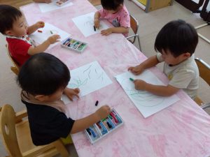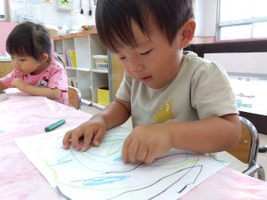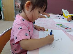 子どもたちはお絵描きも大好きで、「お絵描きする人〜」と声をかけると「はぁーい」と可愛らしい声が聞こえてきますよ