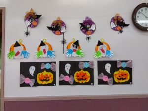 担任のいくこ先生がクモの巣の製作を準備してくれました