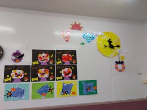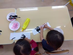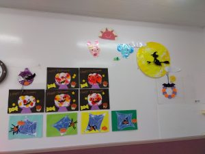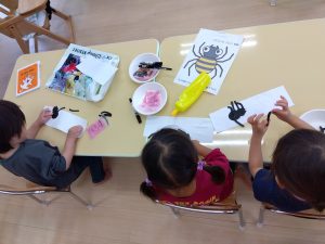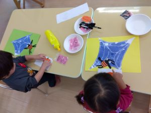 担任のいくこ先生がクモの巣の製作を準備してくれました