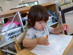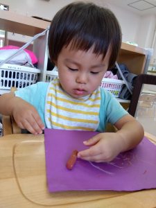 クレヨンの感触を楽しんだり、クレヨンを転がして遊ぶ子どもたちでした