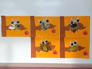 いちご組さんは、お散歩の際に拾った落ち葉を使ってフクロウを作りましたよ