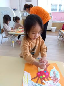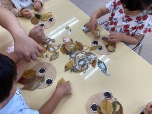 どの葉っぱにしようか迷いながら製作を楽しむ子どもたちでした