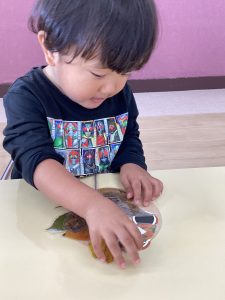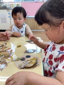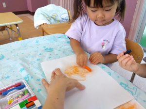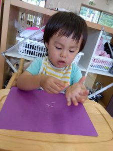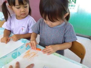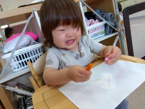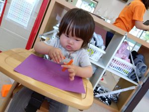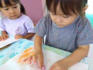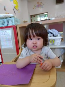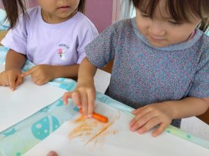 クレヨンの感触を楽しんだり、クレヨンを転がして遊ぶ子どもたちでした