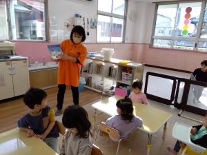 少しずつ長いお話の本も聞けるようになっている子どもたちです