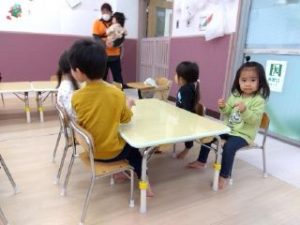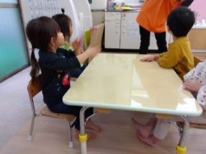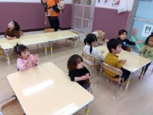 今月の歌では「Baby Shark」も加わったので、知っているお友だちも多く紙芝居で見せていくとどんどん覚えてしまいましたそして、いつの間にか歌えるようになっていた子どもたちです