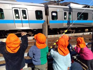 間近で電車を見ることができて、子どもたちは大興奮です