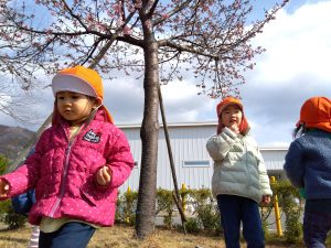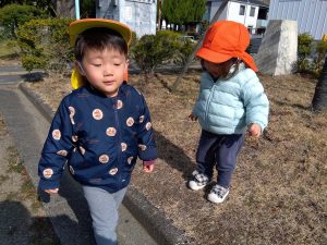 今週は晴れ間が多かったので、お散歩に出かけ戸外遊びを楽しみました