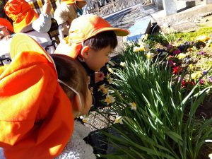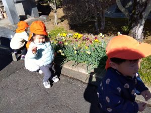 なのはな保育園から一番近いお散歩先の延命寺さんでは、梅や水仙がきれいに咲き並んでいます