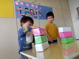 ひな祭りの歌に合わせてパネルシアターを見たり、ゲームをしたり