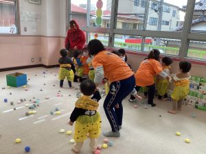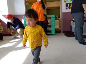保護者の方と一緒に体操をしたり、運動会ごっこを楽しみましたよ