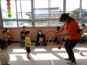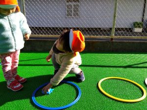 フープを使ってドライブごっこやケンケンパを楽しんでいました