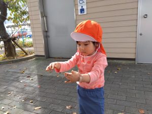 お散歩に出かけ、落ち葉拾いをしたり広場でたくさんかけっこをして身体を動かしました