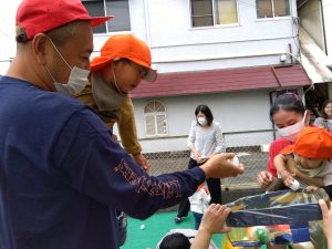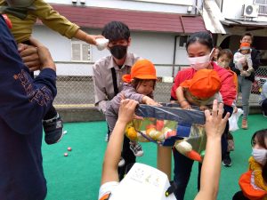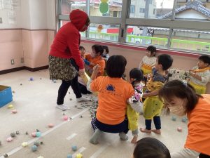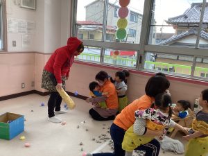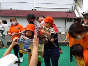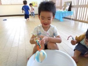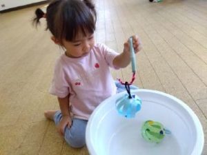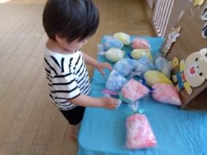 保育者が準備したわたがしをお買い物ごっこしたり、ヨーヨー釣りを楽しみましたよ