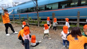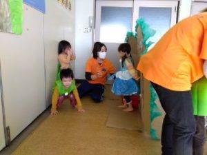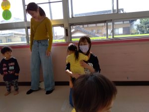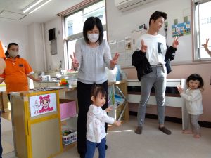 保護者の方と一緒に体操をしたり、運動会ごっこを楽しみましたよ