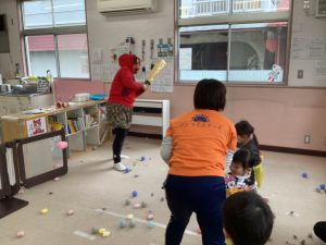 ひな祭りの歌に合わせてパネルシアターを見たり、ゲームをしたり