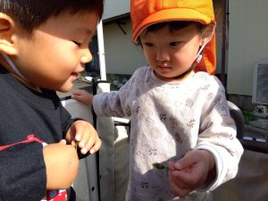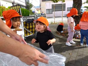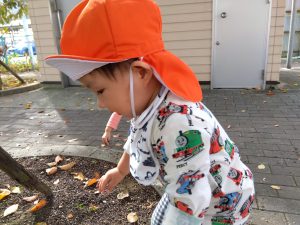 お散歩に出かけ、落ち葉拾いをしたり広場でたくさんかけっこをして身体を動かしました