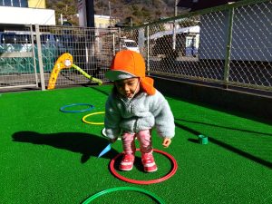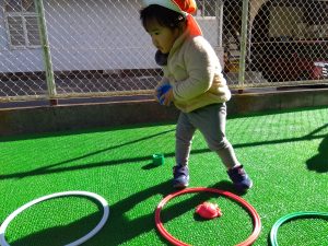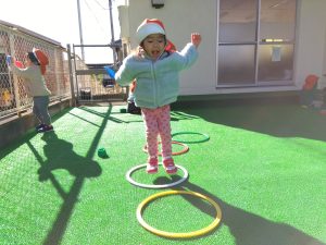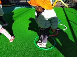 フープを使ってドライブごっこやケンケンパを楽しんでいました