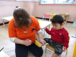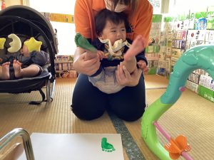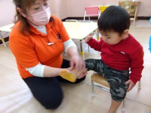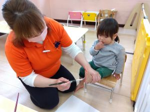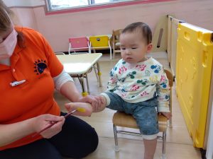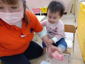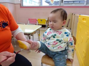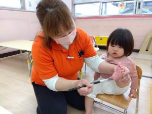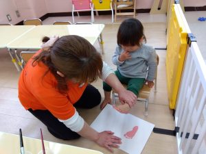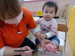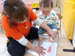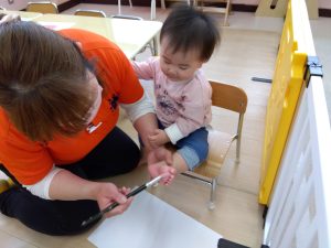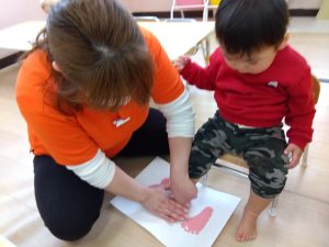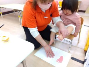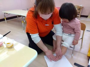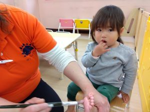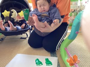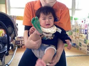 いちご組のお友だちは足形スタンプを楽しみましたよ