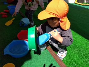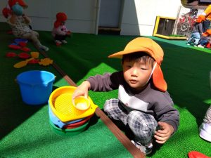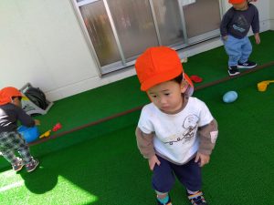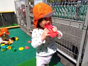 また、園庭に出てボール遊びやおもちゃを出して遊びました