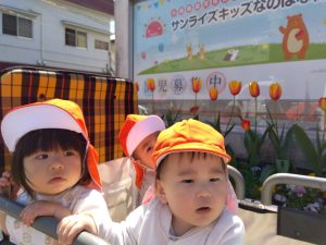 花壇のチューリップを眺めてみたり、短い時間で園周辺にお散歩に出かけました