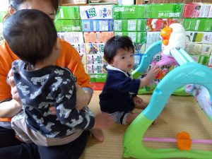 りんご組のお友だちは気の合うお友だちを見つけて一緒に遊ぶ姿が見られます