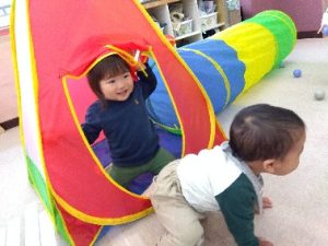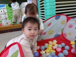 天気が優れなかったこの日は、ボールプールを出して遊びました