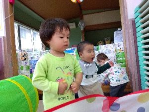お友だちと一緒に中に入って「おーい」と保育者を呼んでくれます