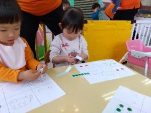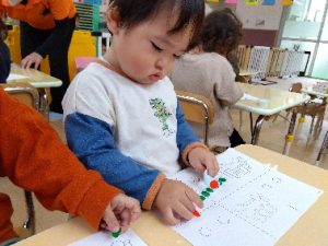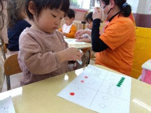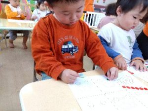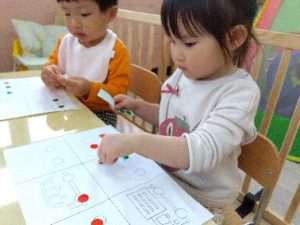 シール貼りは、小さいながらにも子どもたちの性格が見えてきますね