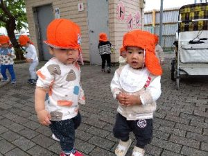 いちご組のお友だちともも組のお友だちが一緒になって遊びます ![]()