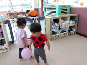別の日・・・室内で風船遊びを楽しんでいました