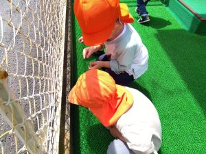 クルっと丸まるダンゴムシをコロコロ転がしてみたり、動き出す瞬間までジッと見つめている子どもたちの目は、すごくキラキラしていました![]()