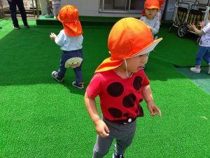 そんな中、雨の合間にお散歩に出かけたり園庭遊びを楽しむことができましたよ