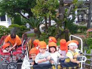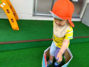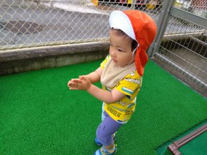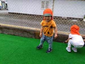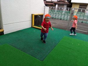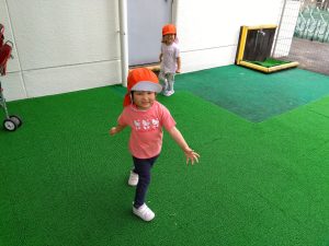 天気のいい日には、お散歩だけでなく園庭でも遊びます