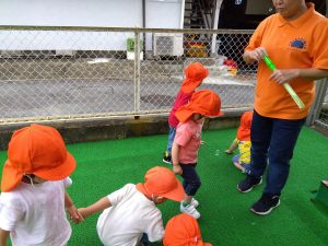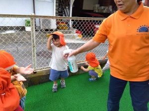 少し気温が高い時には、霧吹きでミストをかけてあげると子どもたちはキャッキャと楽しそうな声をあげていましたよ