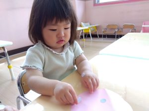 先週はお休みが多く寂しい保育室でしたが、今週は少しずつお友だちが登園再開し賑やかさを取り戻しつつあります