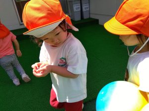 天気のいい日には園庭で遊びました